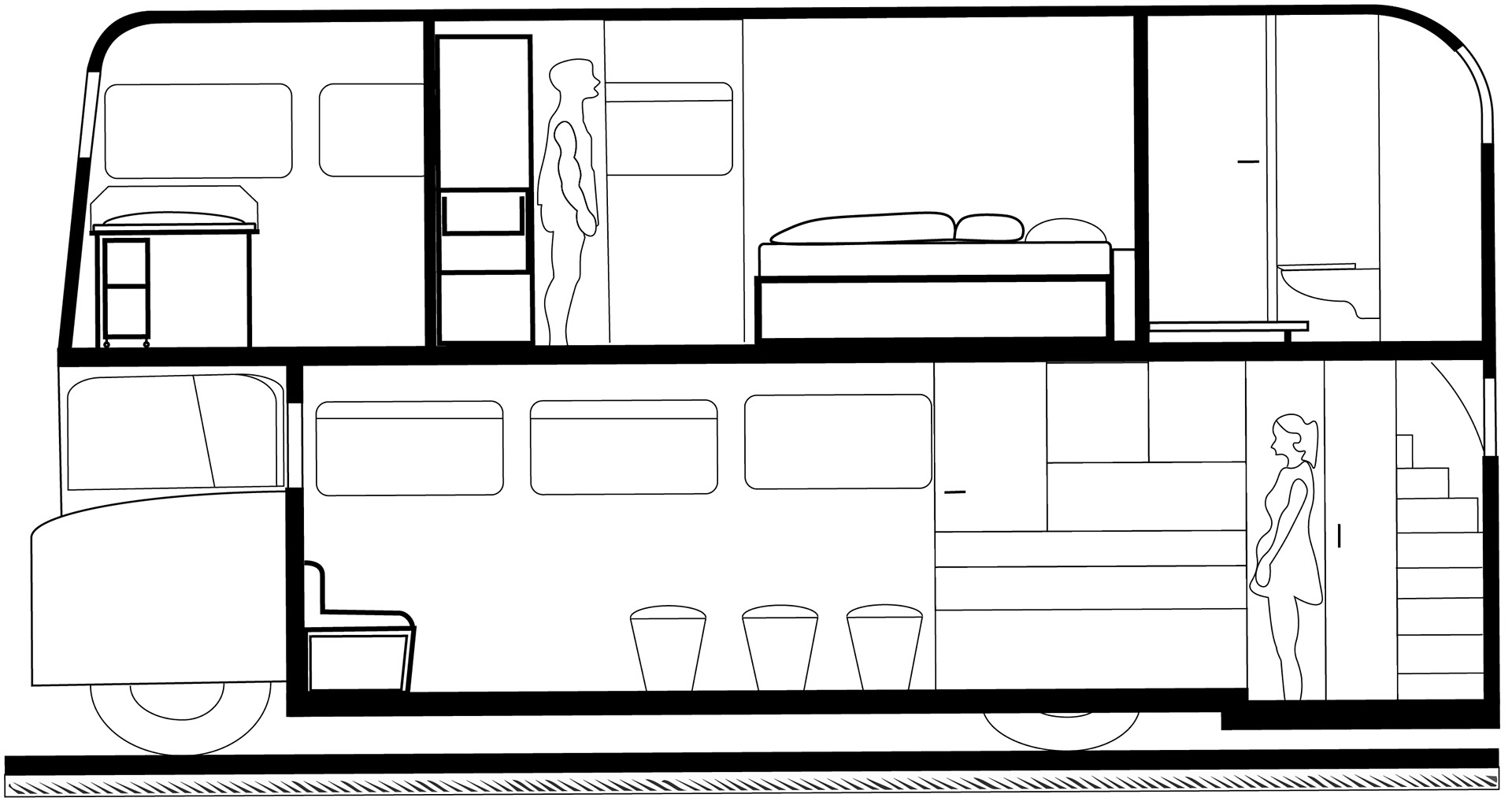 Un bus à impériale anglais est réinventé en maison mobile de 35 m² pour un couple de musiciens et leur enfant. Conçue pour la vie en tournée, cette habitation compacte allie confort, efficacité et polyvalence — servant à la fois de maison familiale et d’espace créatif.